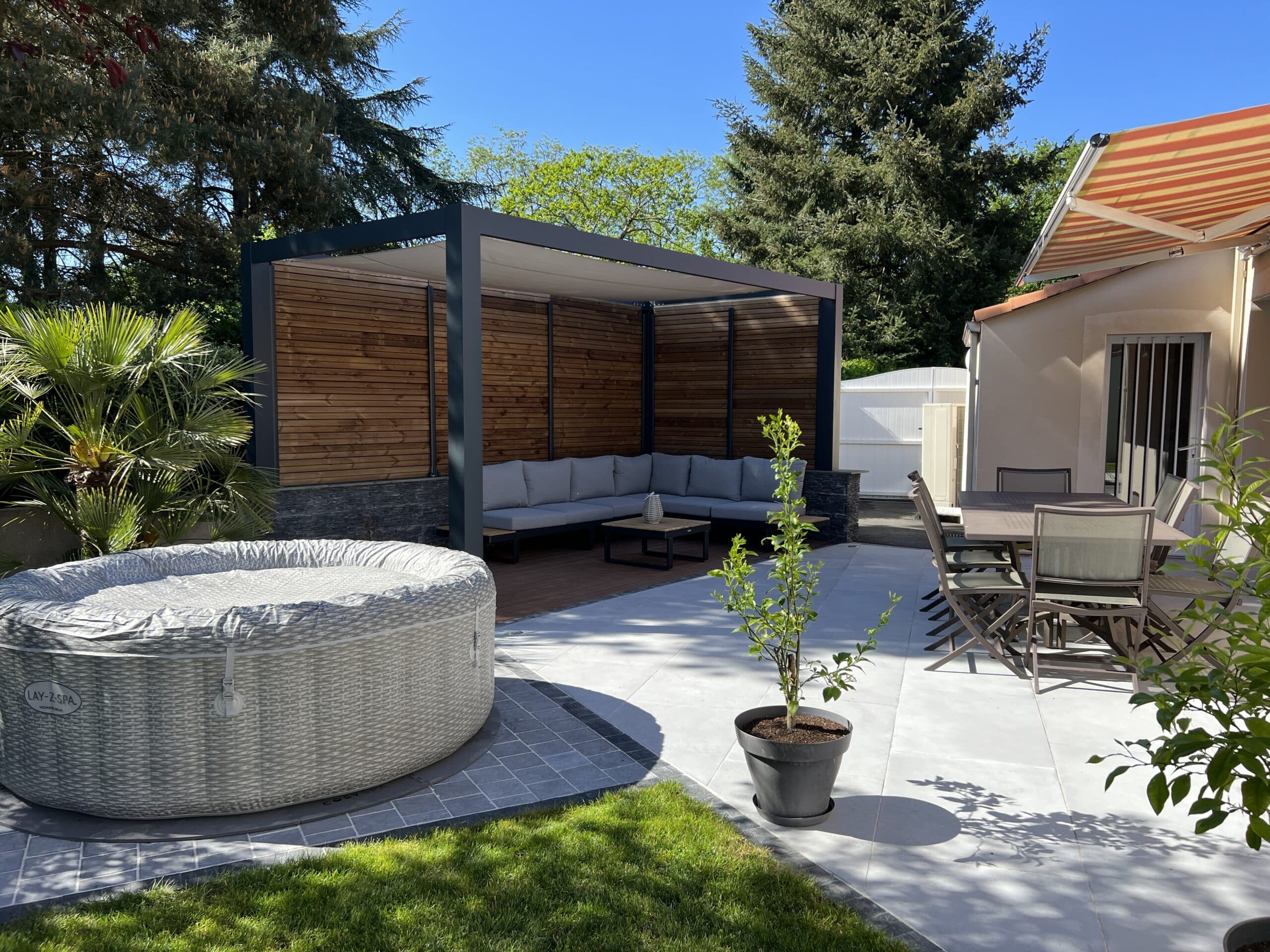 - Mise en place d’une toile d’ombrage pour créer une zone de détente confortable.